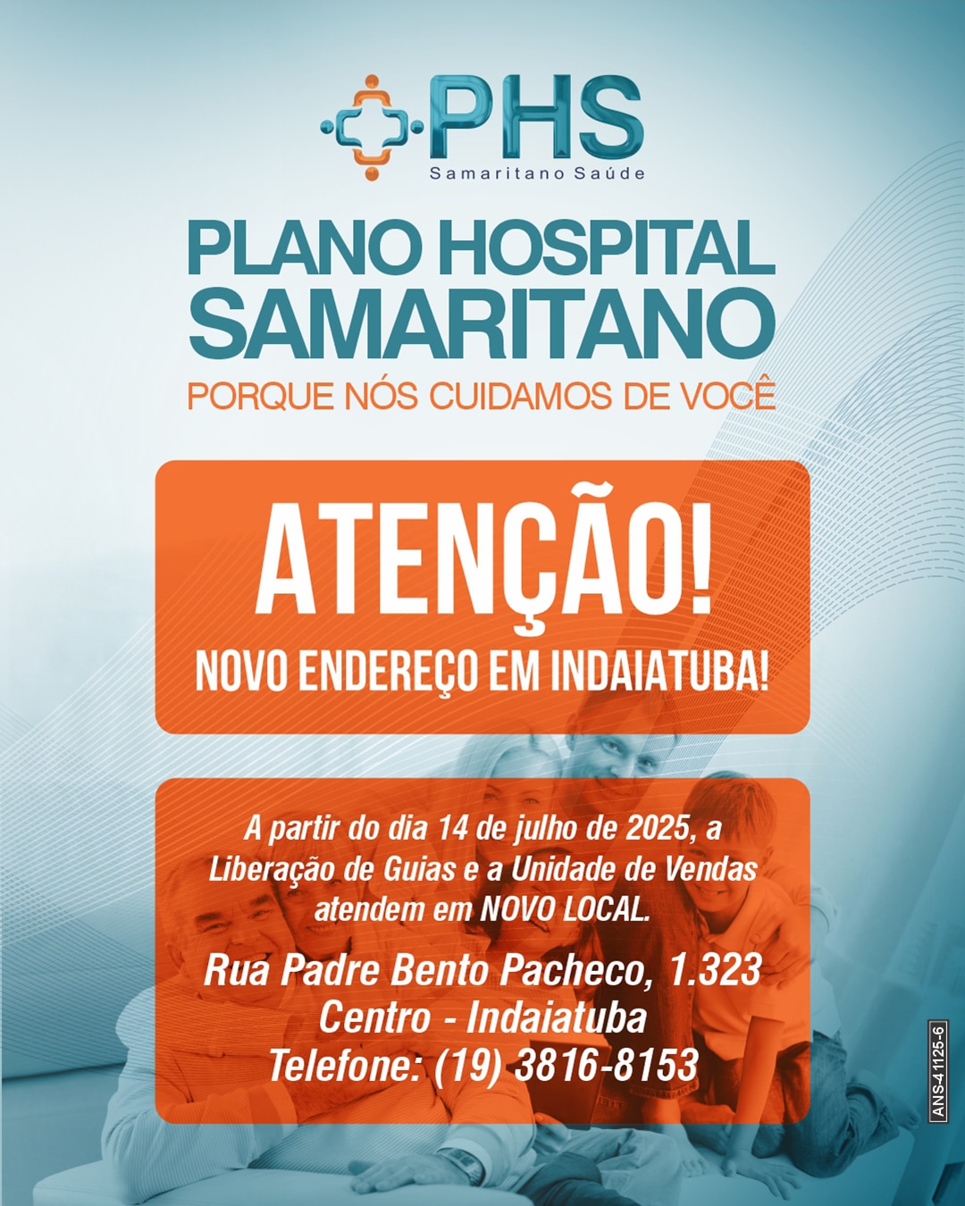 Para oferecer ainda mais comodidade e qualidade no atendimento aos beneficiários, o Plano Hospital Samaritano informa que, a partir do dia 14 de julho de 2025, a Unidade de Liberação de Guias e a Unidade de Vendas passam a atender em novo endereço, no centro de Indaiatuba.